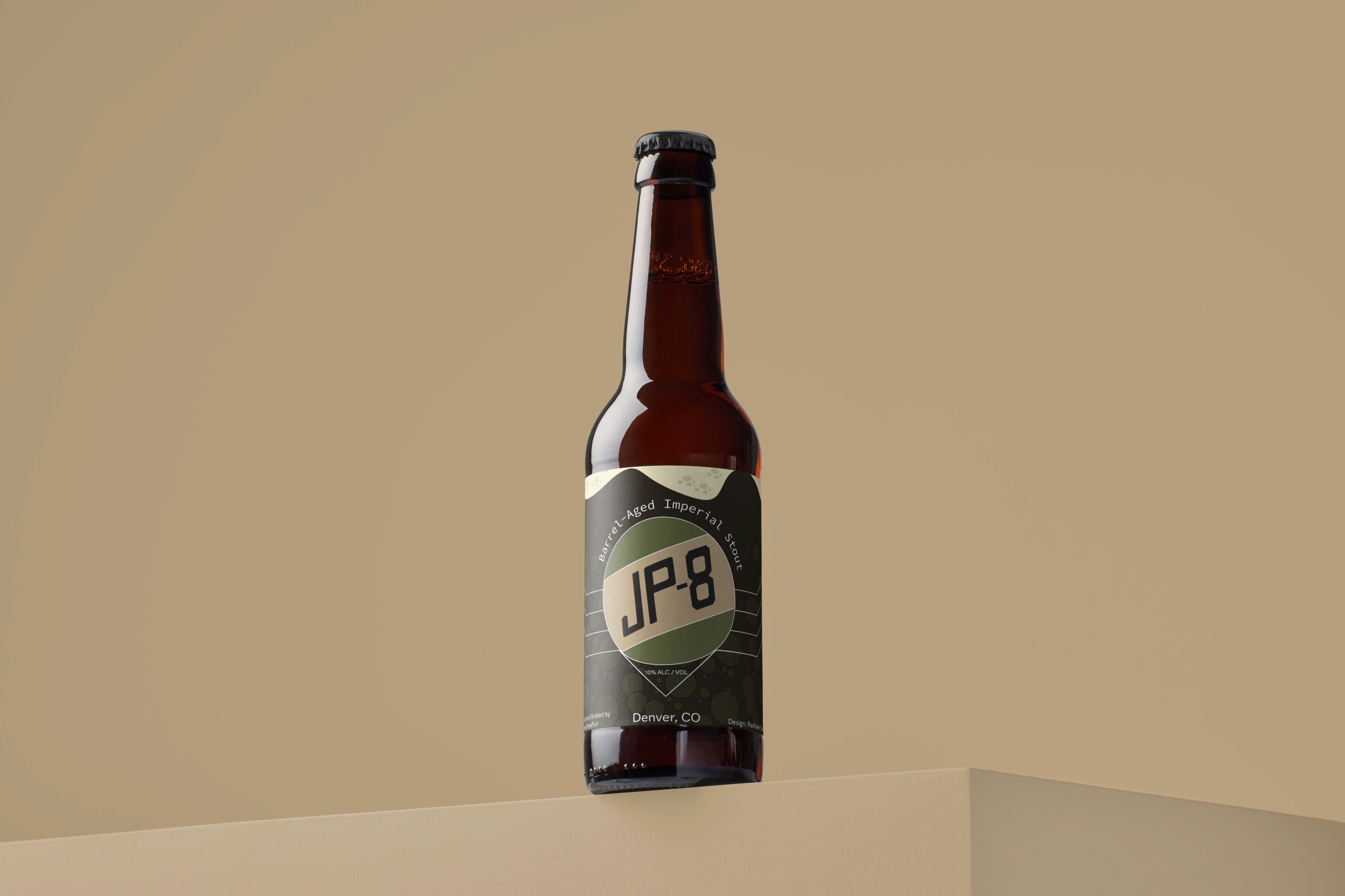 jp-8 is a client-based project developed for the school of hospitality at metropolitan state university of denver. the objective was to create a cohesive brand identity, that included both a brandmark and a complete beer label, which was in celebration of chris thibodeau’s dual passion in the brewing industry and his background in the air force.